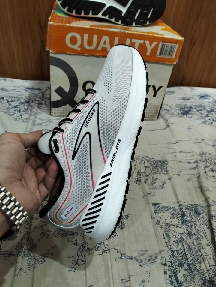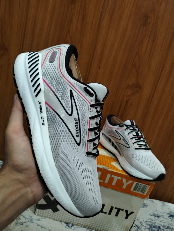 Brooks Ariel GTS 23 running shoes overpronators ke liye design kiye gaye hain, jo guide rails support system ke saath extra stability aur smooth stride provide karte hain. DNA Loft cushioning har step ko soft aur responsive banati hai, jis se long runs aur daily workouts comfortable ho jate hain.