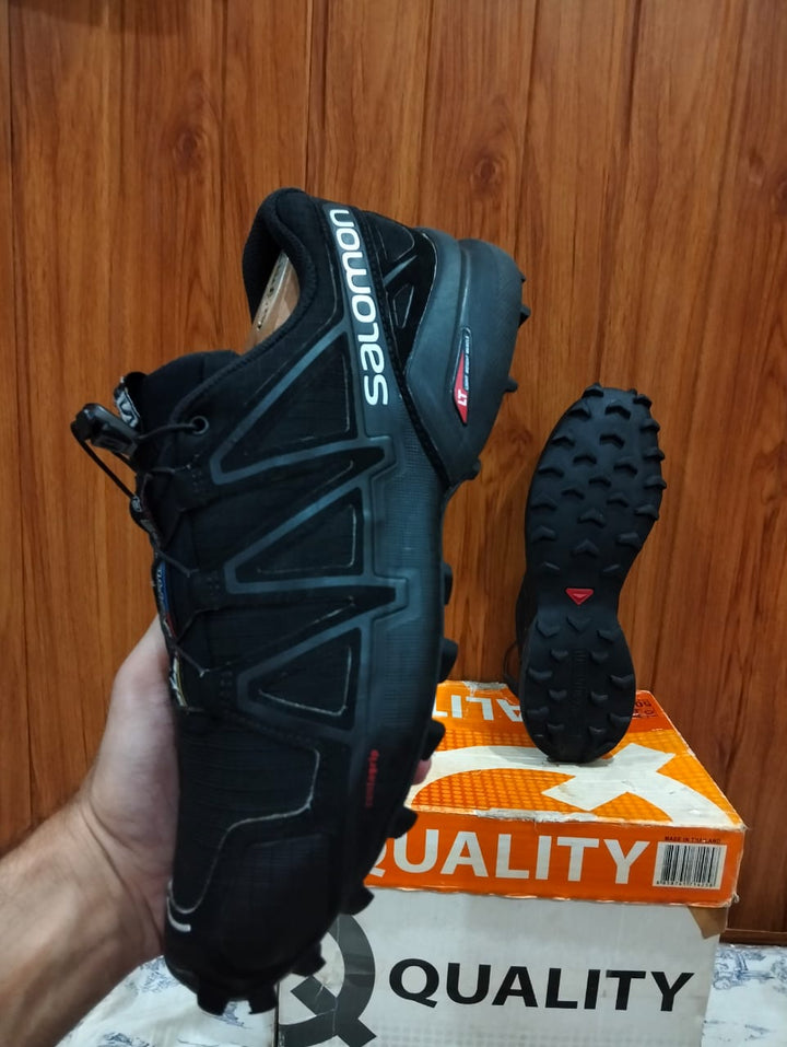 Salomon Speedcross 4 hardcore trail running aur tough hiking terrains ke liye design kiya gaya ek high-performance shoe hai. Iska aggressive Contagrip® outsole deep, sharp lugs ke saath muddy, rocky aur uneven surfaces par powerful grip provide karta hai — slippery trails bhi confident feel hoti hain.
