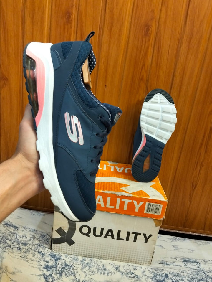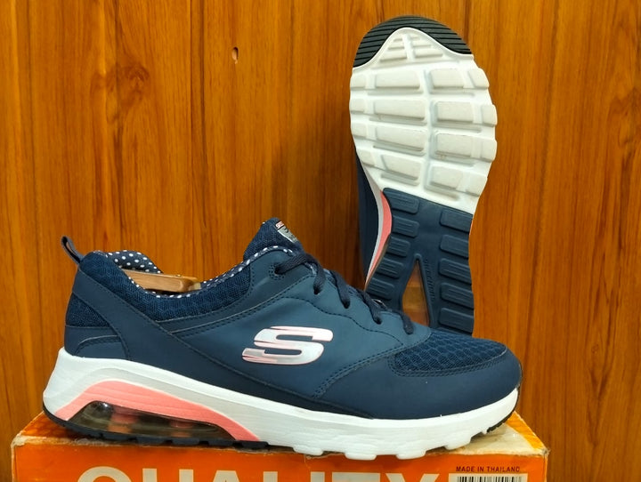 Midsole mein visible Skech-Air cushioning har step ko extra bounce aur shock absorption deta hai, jo smooth aur lightweight walking experience ensure karta hai. Breathable mesh upper airflow ko improve karta hai, jabke flexible rubber outsole secure grip aur durability provide karta hai.